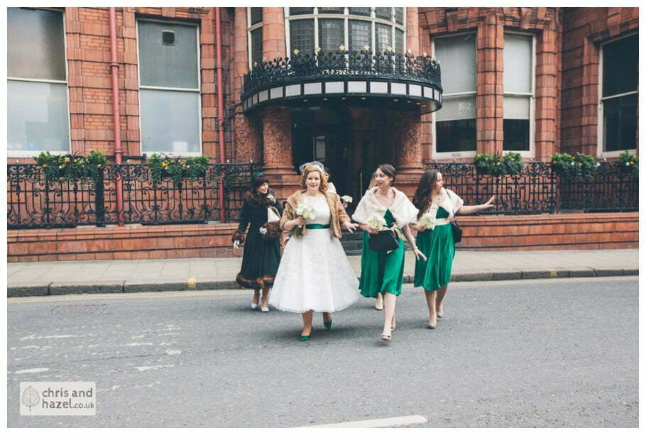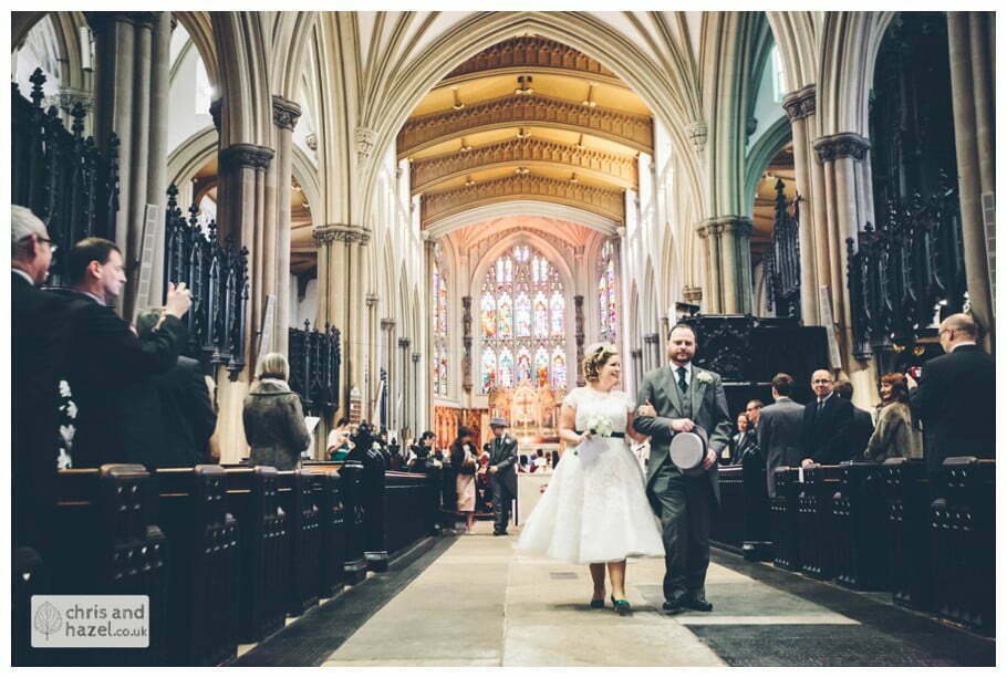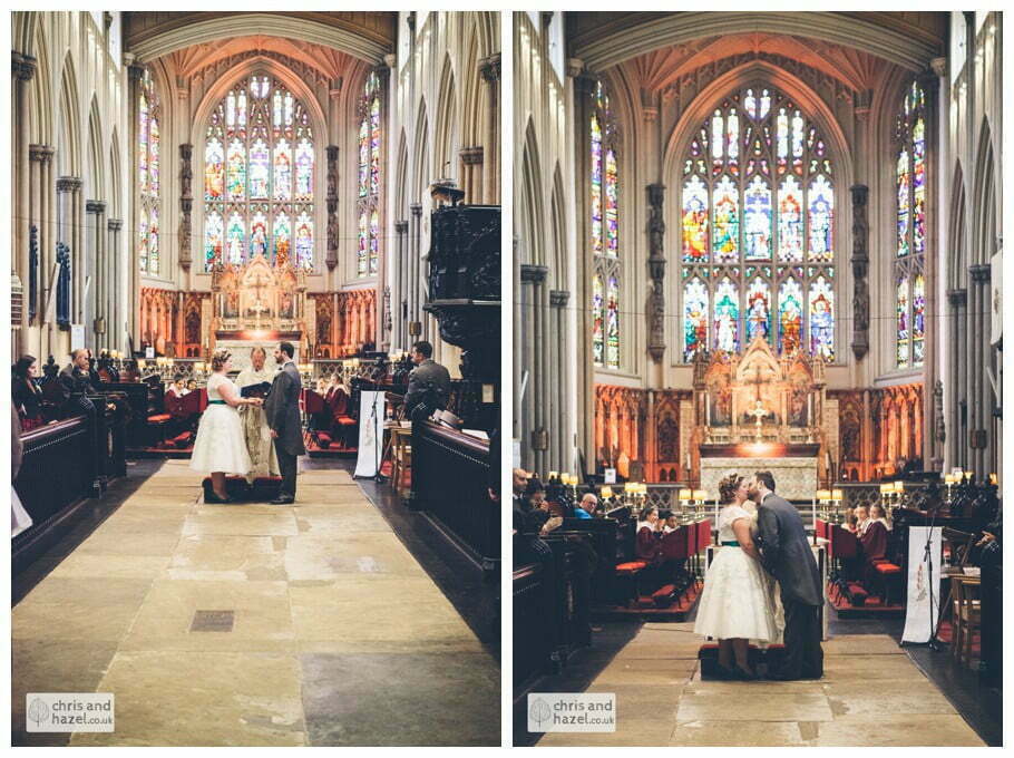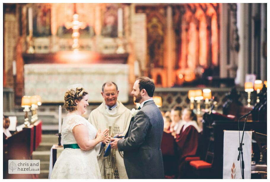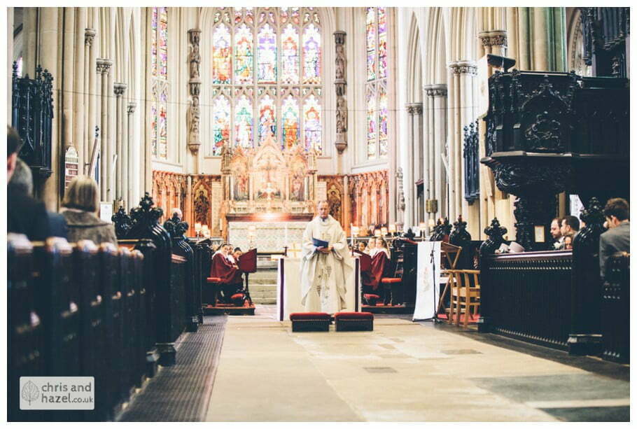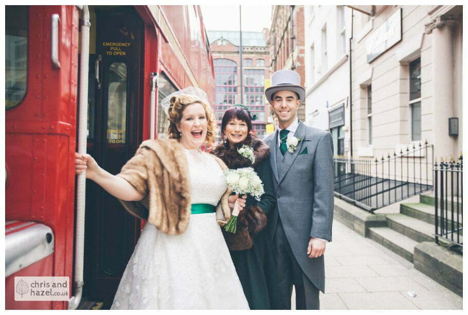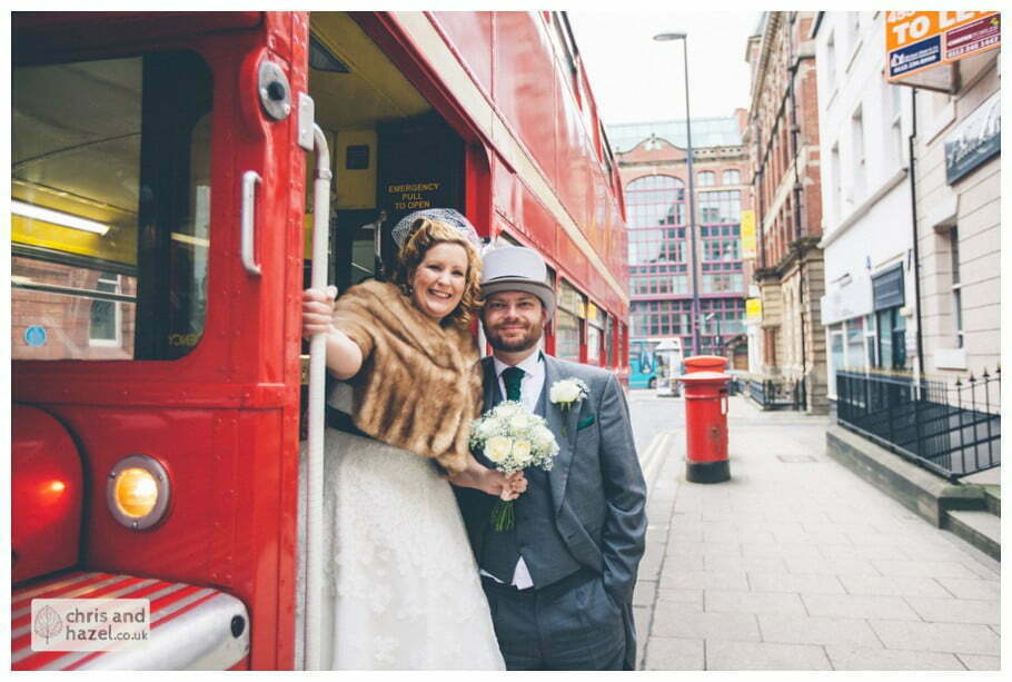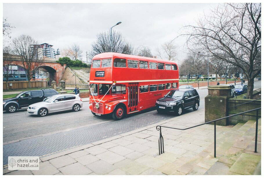 Lee & Lois had arranged a big red double decker London style bus to take the bride and bridesmaids to the church. The ceremony took place at Leeds minster which is such a fantastic wedding venue, it is break taking inside! The ceremony was lovely and we snapped some formal shots outside before going on a tour around the City Centre on the red double decker which was such a fun experience and a great idea for the transition from the church to the reception venue.
